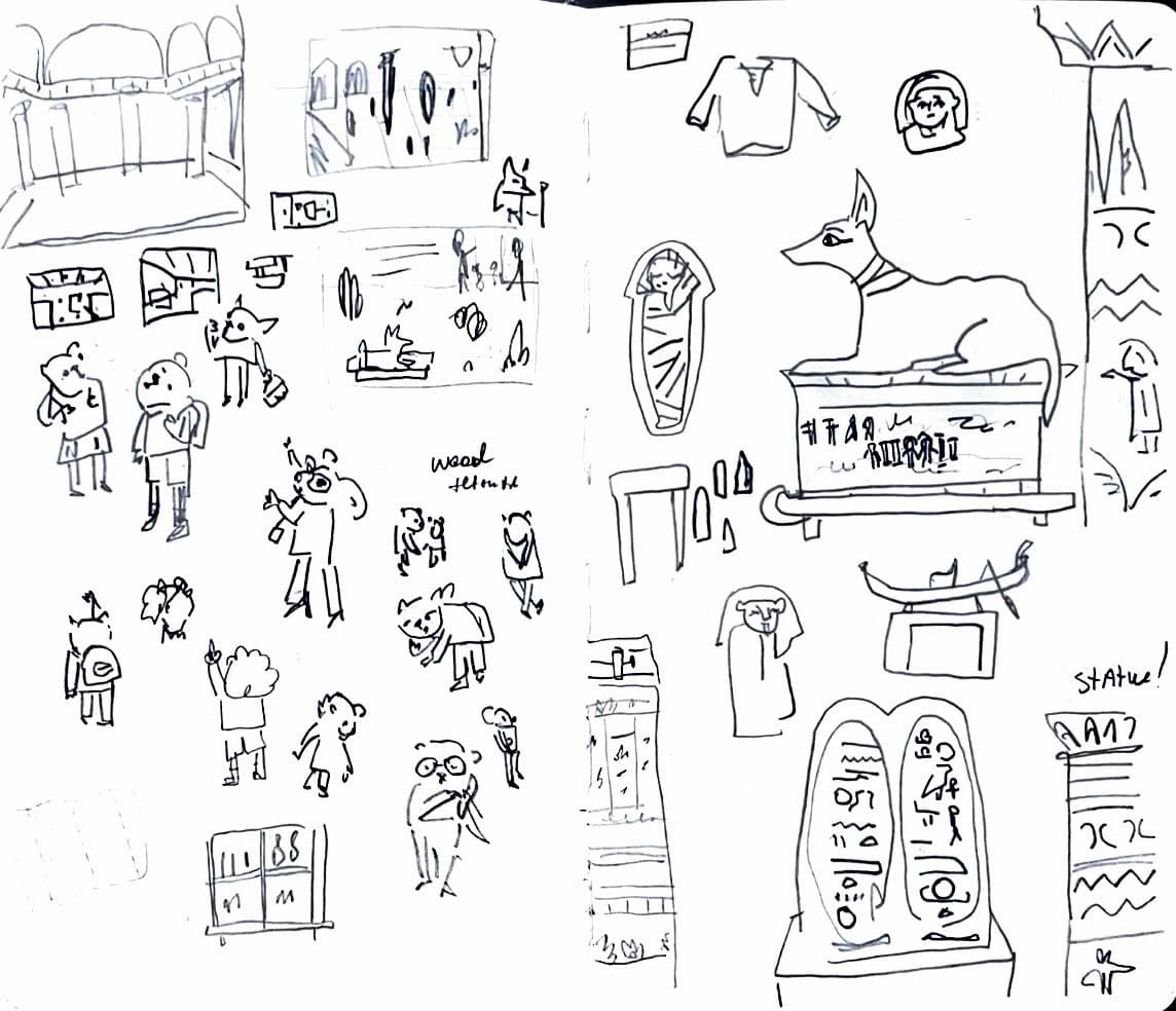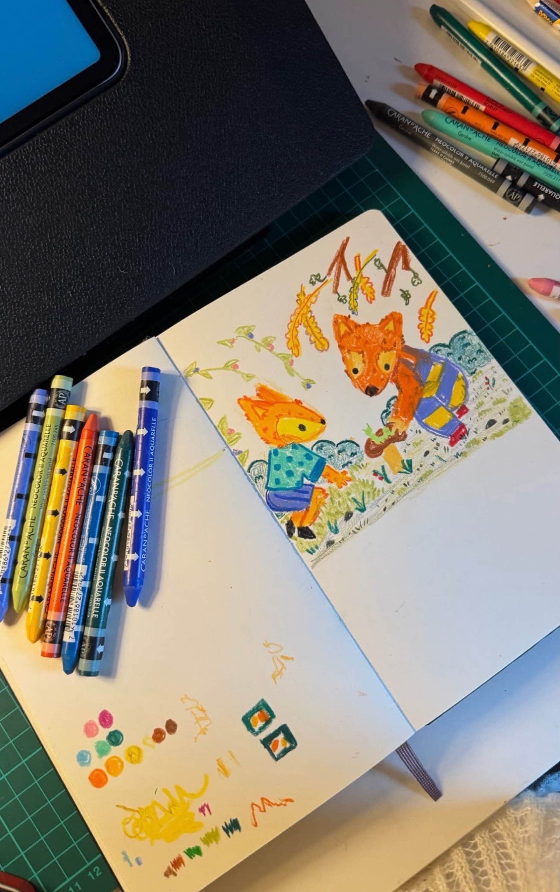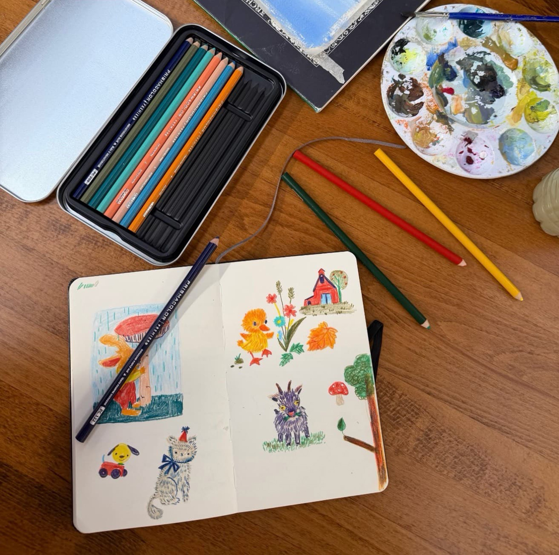 It's where I brainstorm ideas, sketch characters, and scribble notes without worrying how it looks. You'll find a mix of quick doodles, early concepts, and observational sketches from life drawing sessions with friends. My go-to materials: mechanical pencil, Micron pen, and Caran d'Ache pastels with Prismacolor pencils for observational work.